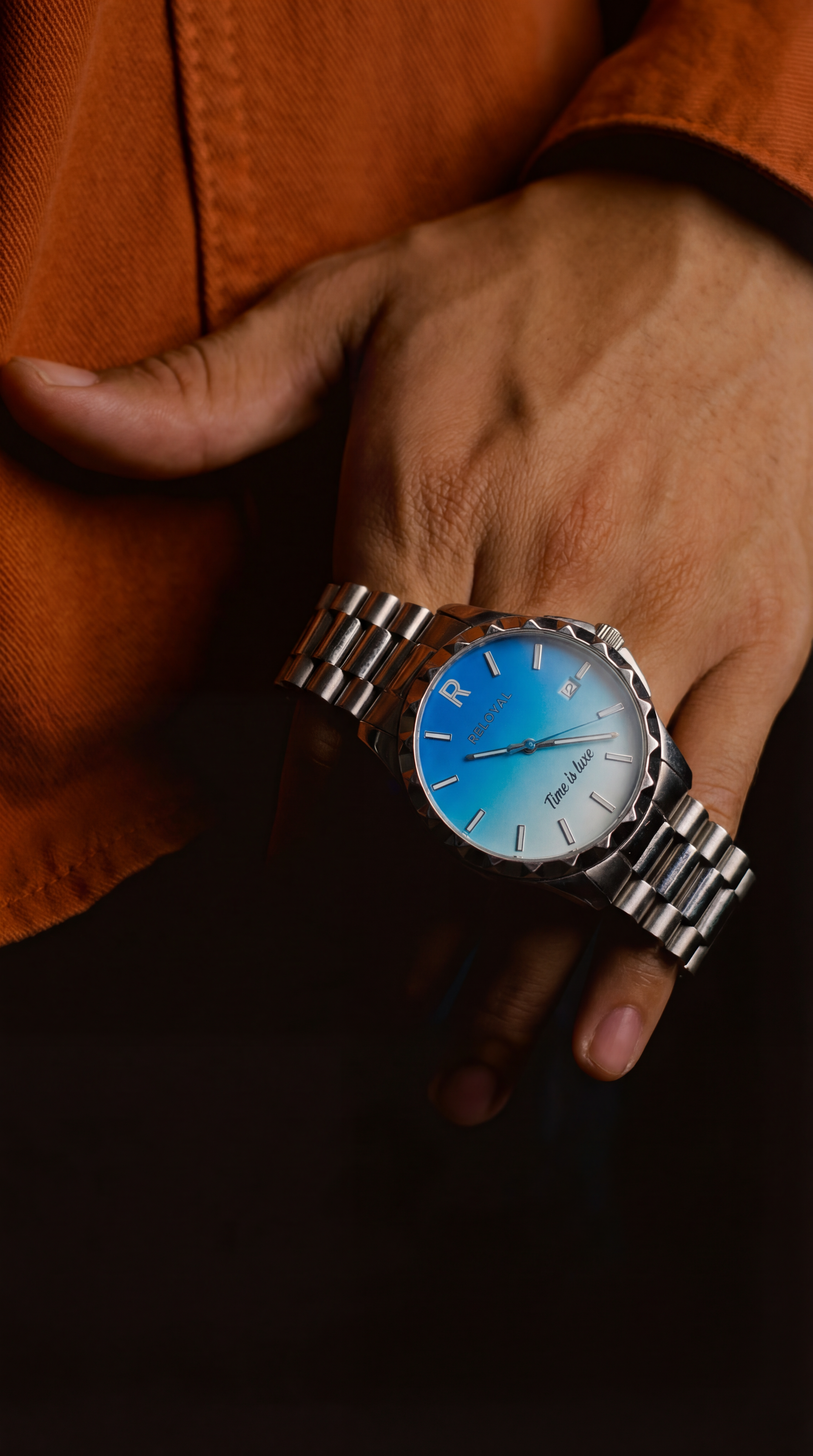 Une montre inspirée de la pureté du ciel et de la profondeur des océans, incarne la fraîcheur et la sérénité. Son cadran bleu dégradé révèle une sophistication intemporelle.